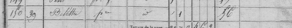 Bien que vivant toujours séparément sur le recensement de 1851, Pierre chez la famille de son neveu, Sébastien ; Françoise, dans la famille de sa fille, y est reconnue comme « femme Belletre ».